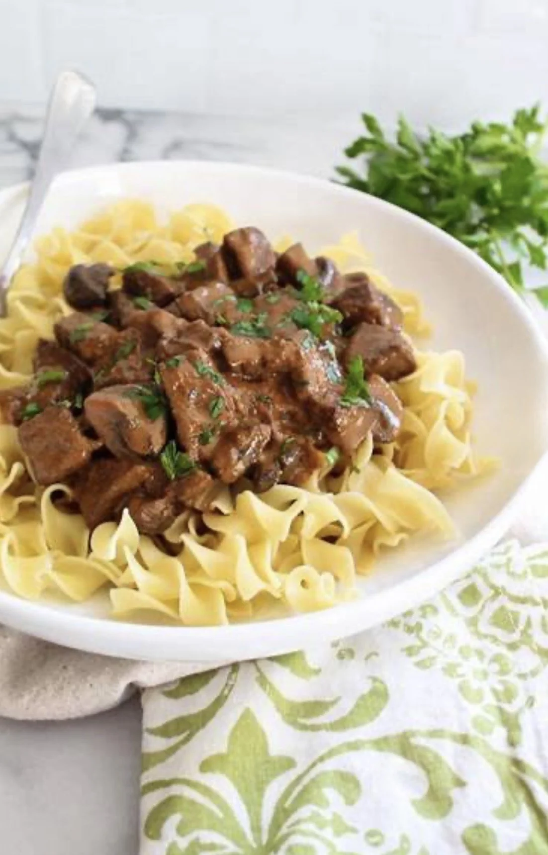 Elevate your cooking game: Master the rich, slow simmered, comforting dish of Julia Child; Saute de Boeuf a la Parisienne (Beef saute with cream and Mushroom Sauce).